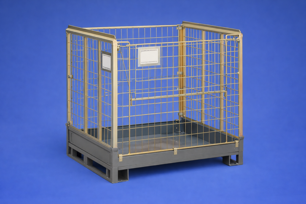 The Collapsible Euro Pallet is a foldable steel storage and transport pallet designed for efficient material handling and returnable packaging operations. Its collapsible side panels allow the pallet to be folded when empty, reducing storage space and return freight cost.